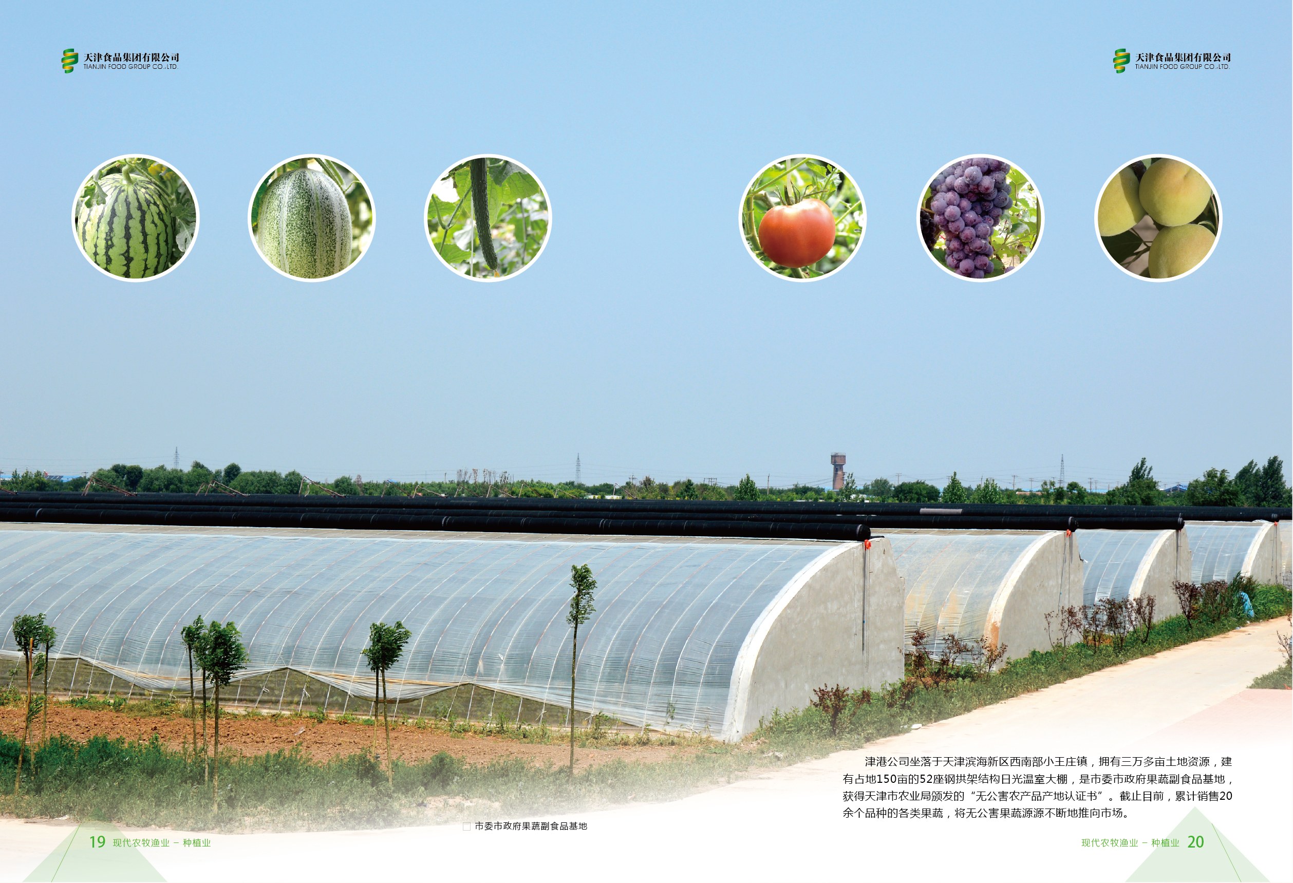The steel-structured greenhouse created by Tianjin Agribusiness Jingang Co., Ltd.is the fruit, vegetable and non-staple food center of Tianjin CPC Committee and government. The greenhouse has been identified by Tianjin Agriculture Bureau as an origin of pollution-free agricultural products.