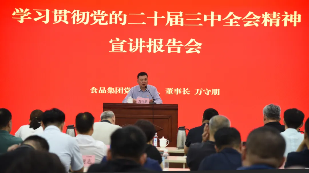 報(bào)告會(huì)上,萬守朋緊緊圍繞習(xí)近平總書記在黨的二十屆三中全會(huì)上的重要講話和全會(huì)《決定》,深入宣講了黨的二十屆三中全會(huì)的重大意義,深刻闡釋了進(jìn)一步全面深化改革的指導(dǎo)思想、總目標(biāo)和重大原則,并對(duì)《決定》提出的關(guān)于深化國(guó)資國(guó)企改革的重大舉措談了認(rèn)識(shí)體會(huì),對(duì)食品集團(tuán)切實(shí)抓好各項(xiàng)改革任務(wù)的貫徹落實(shí)進(jìn)行了深刻思考和詳細(xì)解讀。