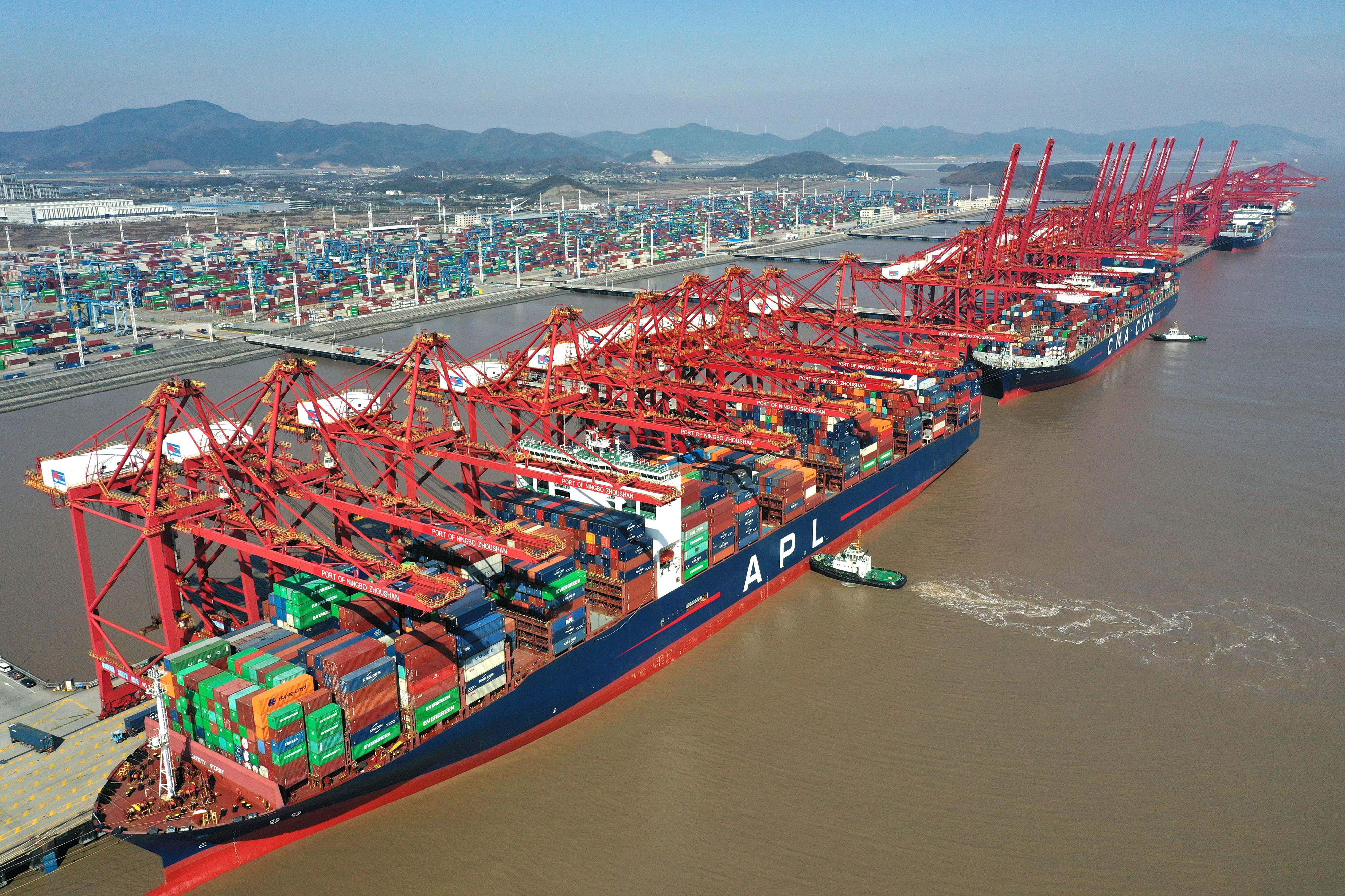 貨輪停靠在浙江寧波舟山港梅山港區(qū)碼頭(2024年1月24日攝,無人機(jī)照片)。新華社記者 黃宗治 攝